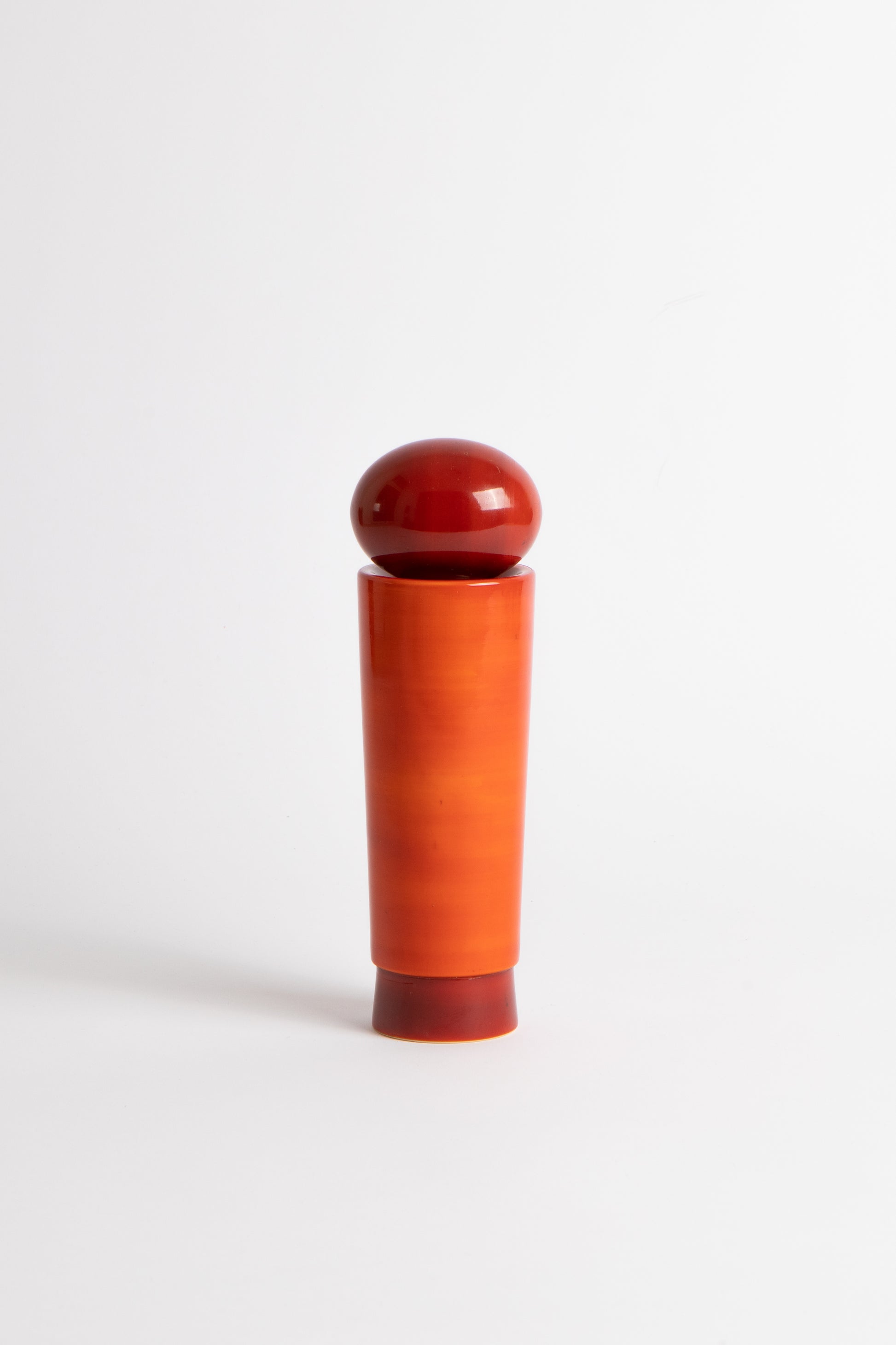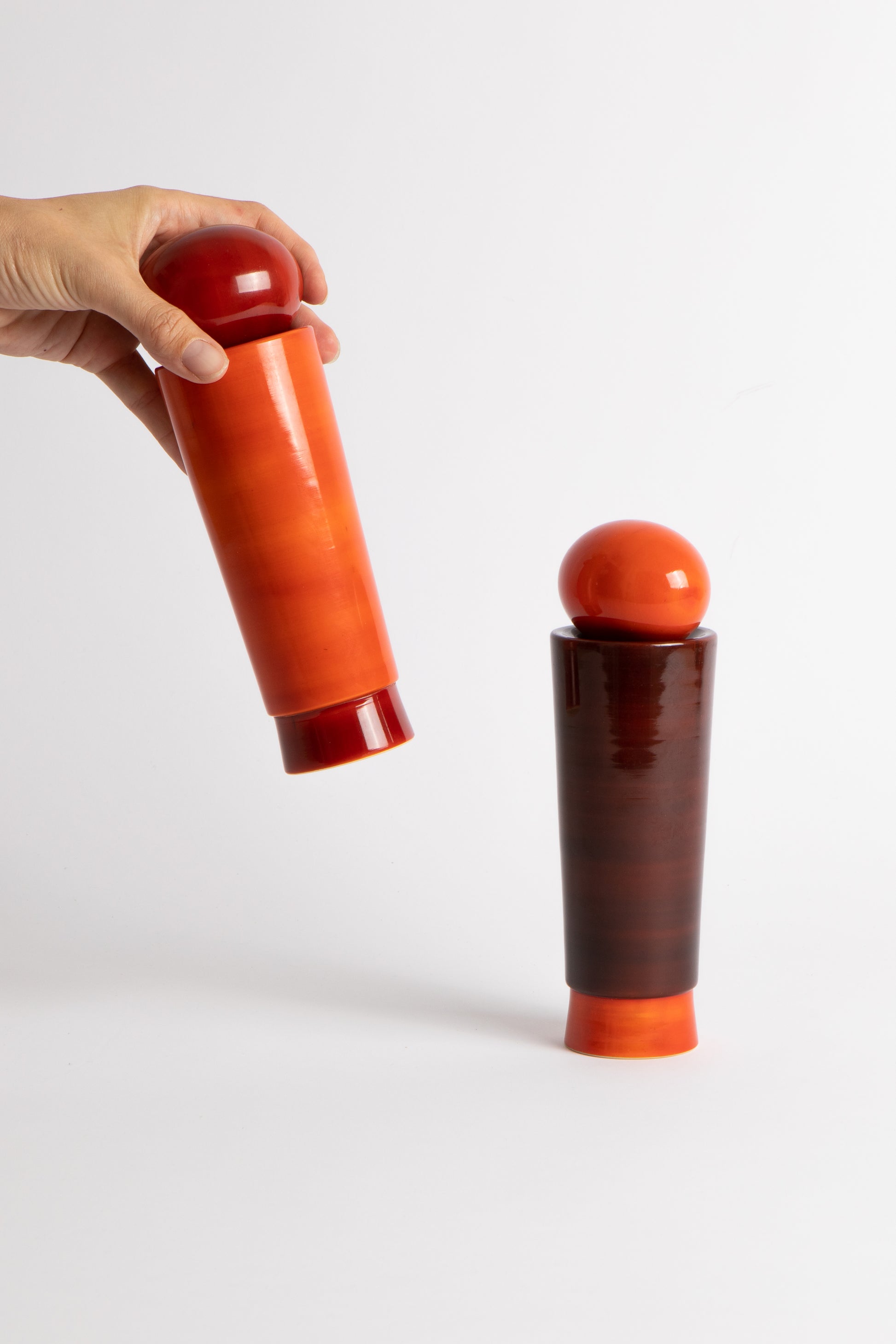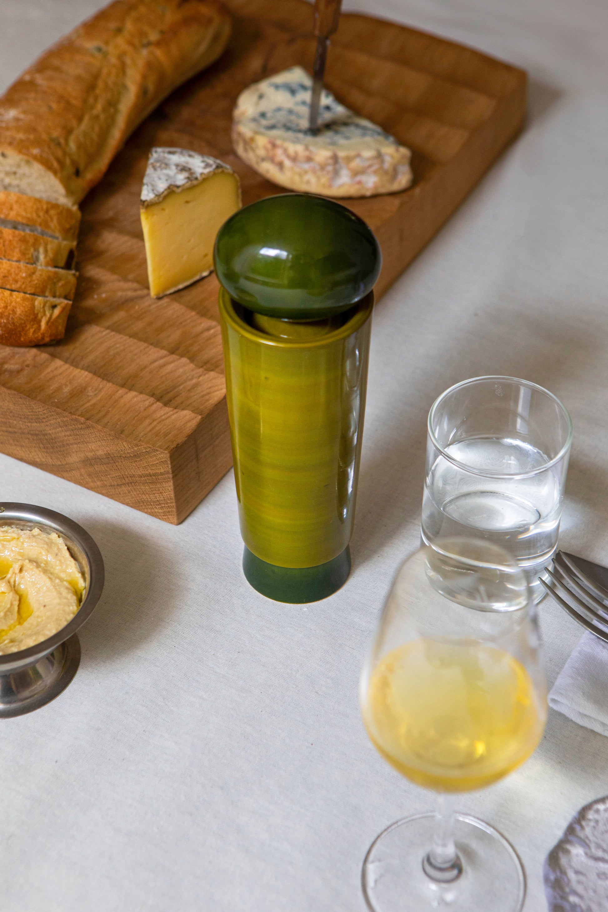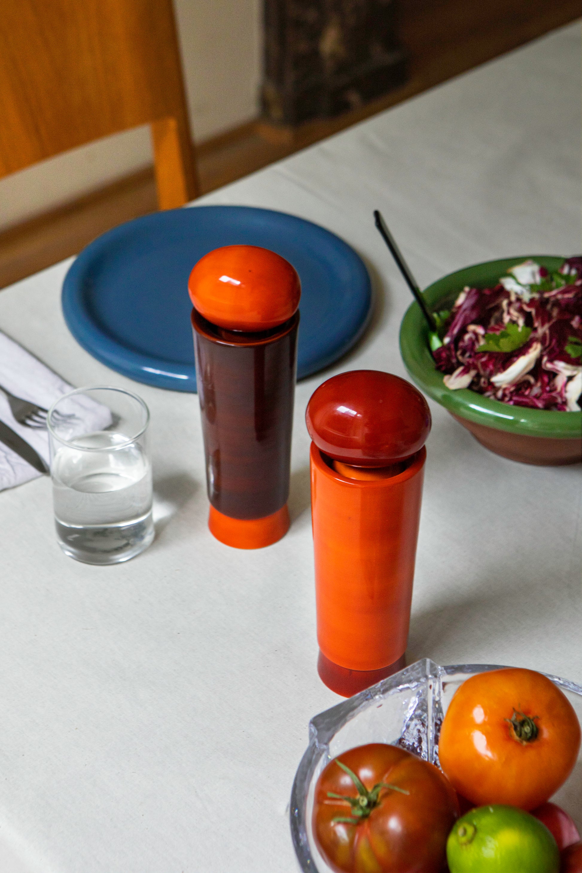 These Spice Grinders are hand-crafted by artisans in Channapatna using a century-old woodturning technique and natural lacquer applications. To fill your grinder with pepper corns or coarse salt, simply pull the egg from its base to open the container.