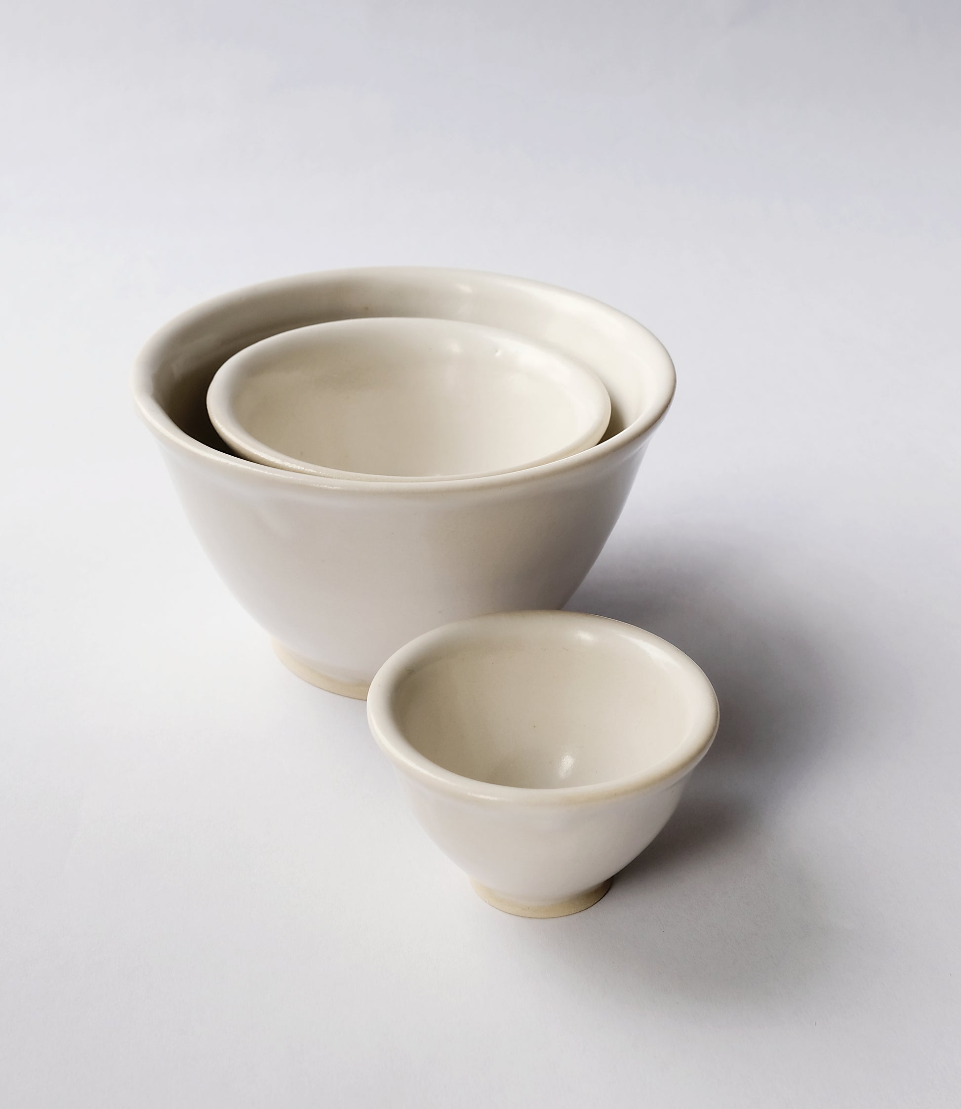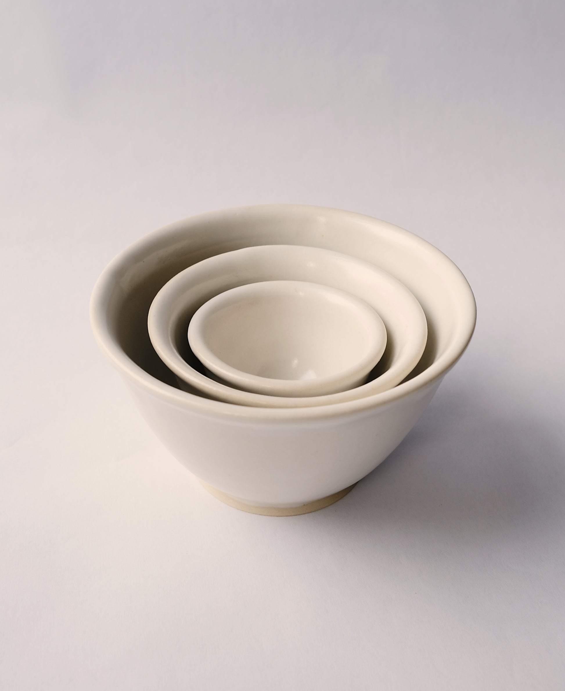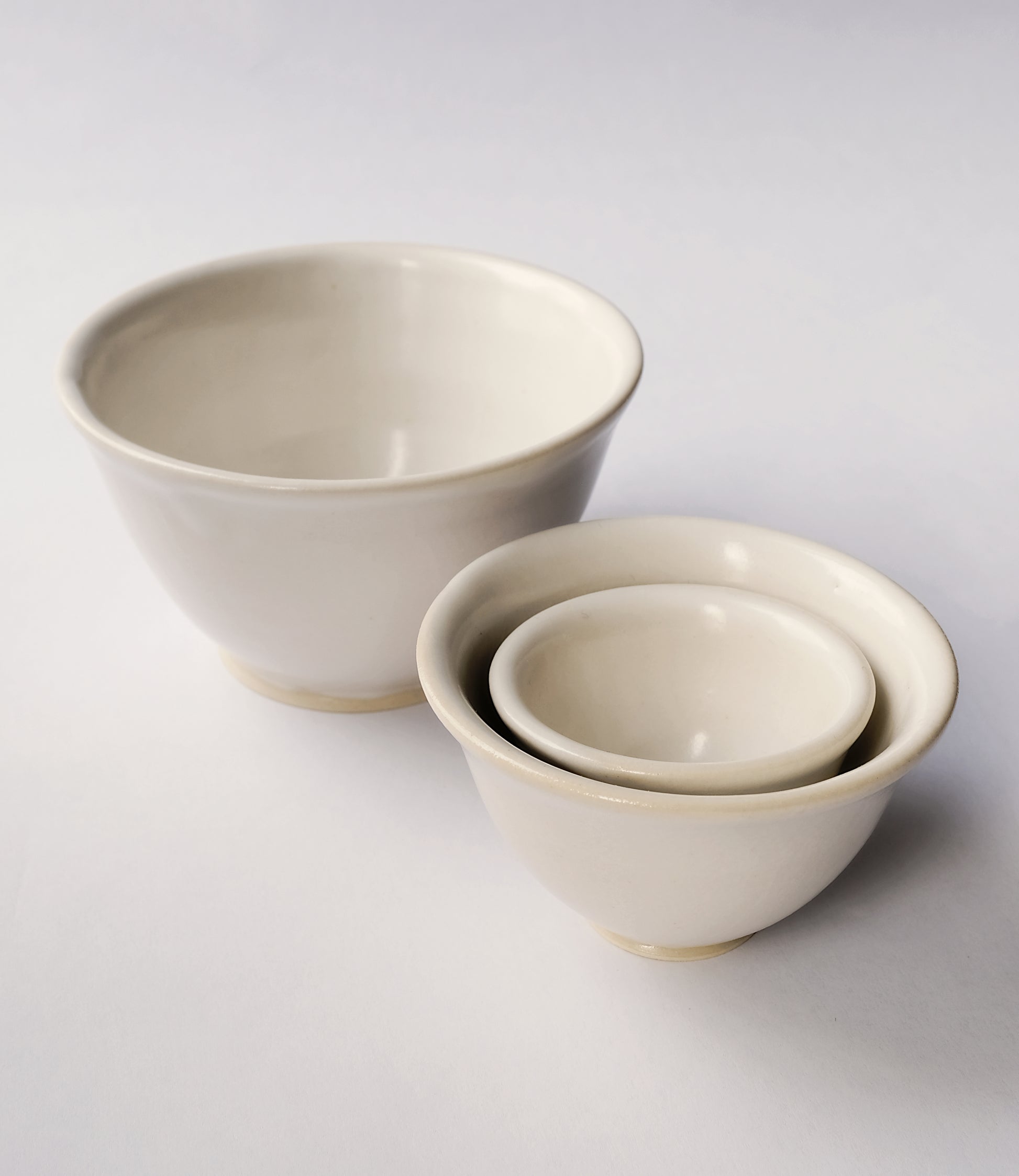 A set of three hand thrown Aperitivo bowls, made by Tahni Bouhadana in her Melbourne studio.