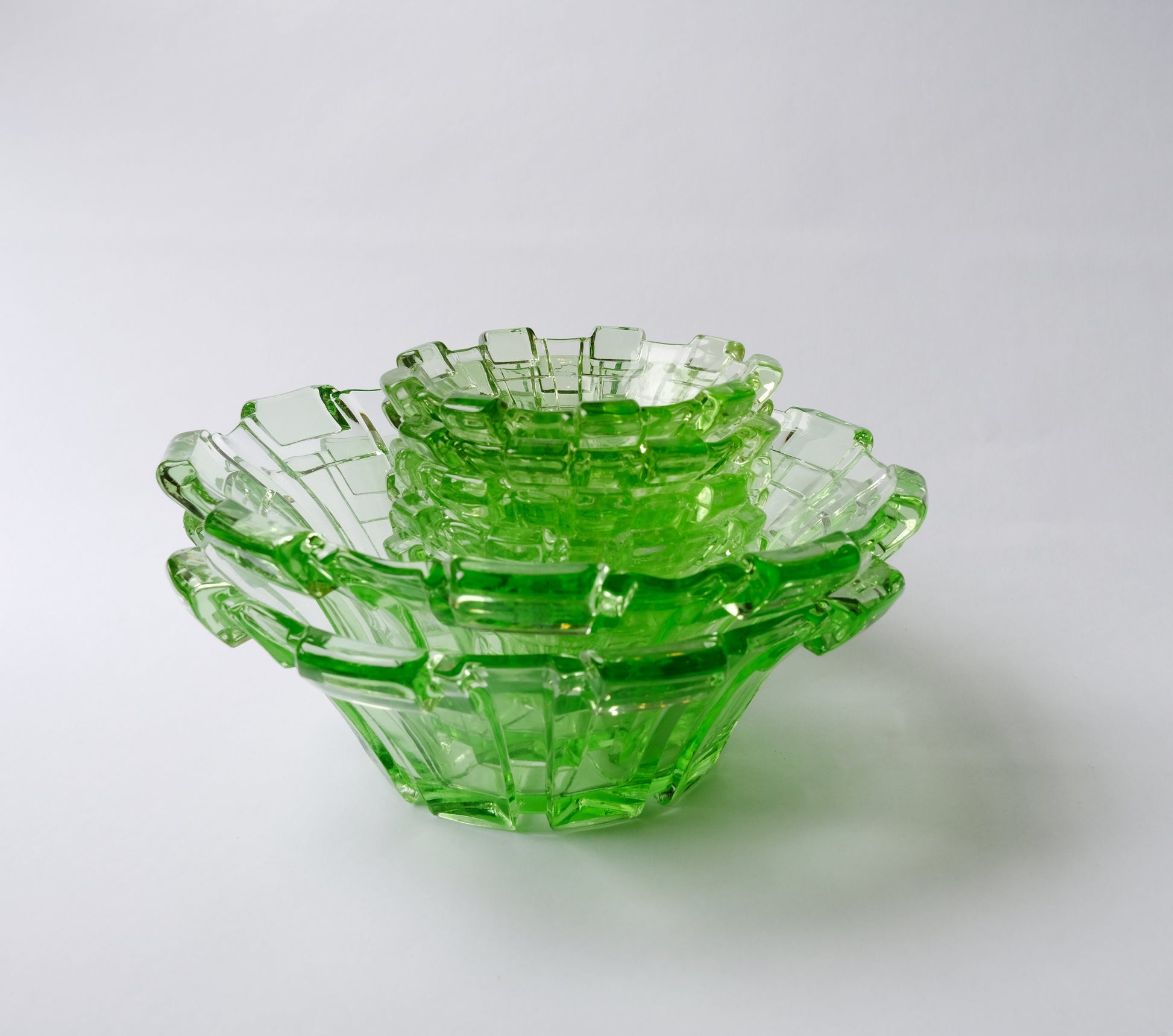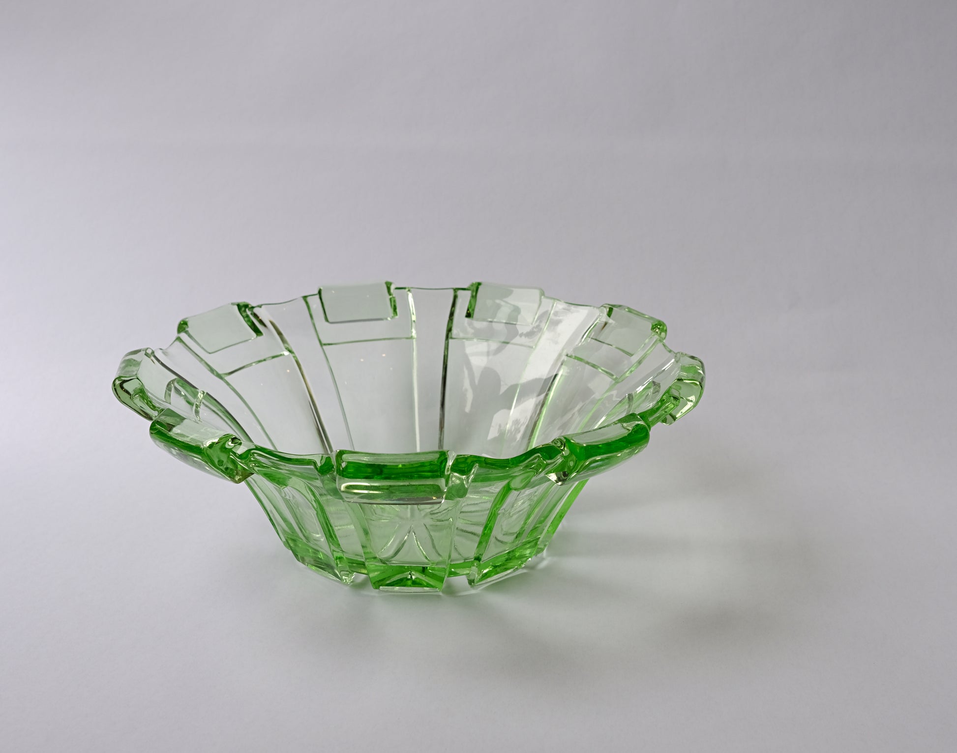 Stölzle Vintage Art Deco Green Depression Glass Bowl